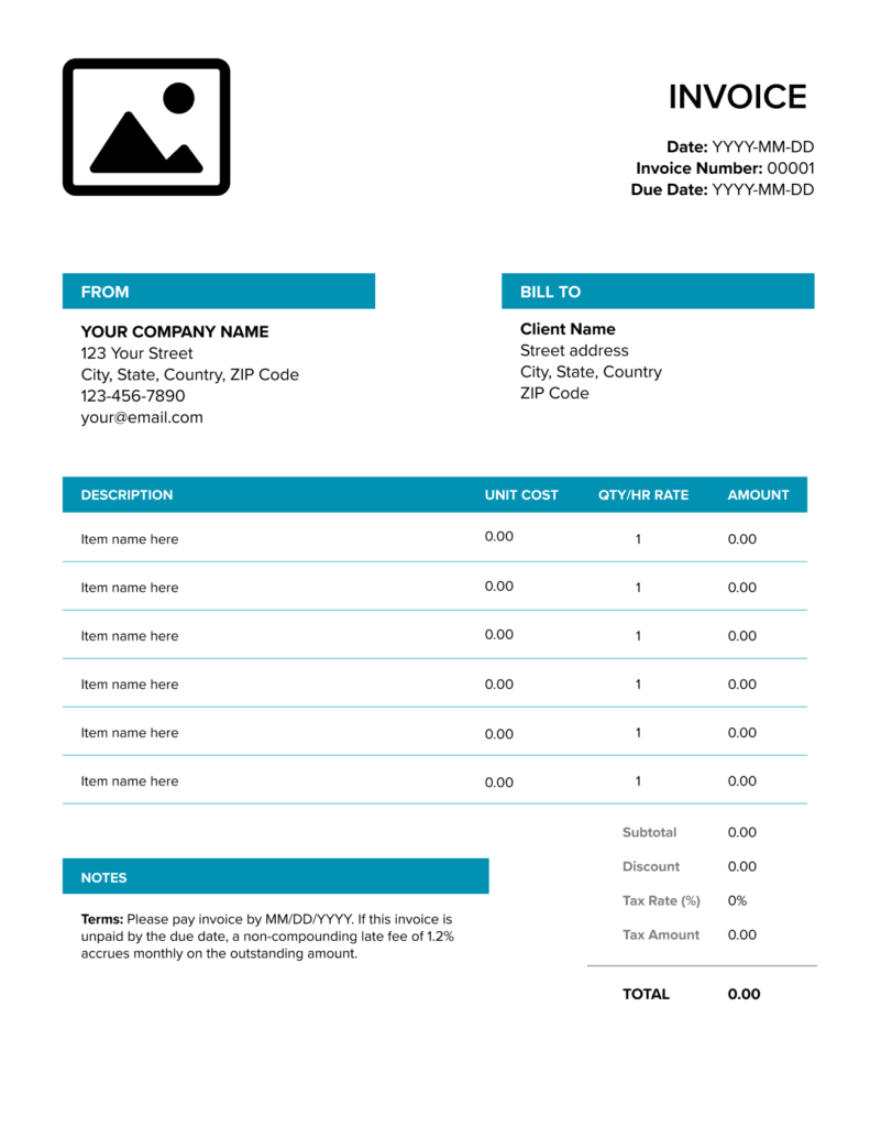 Le nom de votre entreprise est un élément fondamental d’une facture professionnelle. Il identifie votre entreprise et établit votre marque. L’ajout d’un logo d’entreprise apportera une touche professionnelle.